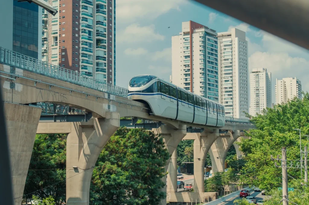 A BYD, em parceria com o governo de São Paulo, inaugurou a Linha 17-Ouro do Metrô. O trem a bateria SkyRail da empresa foi escolhido para operar na linha, que conta com 14 composições, cada uma formada por cinco vagões contínuos com capacidade para 616 passageiros. Os veículos são equipados com tecnologia de condução automatizada e movidos a bateria Blade, dispensando o terceiro trilho. O período de testes incluiu simulações de velocidade, sinalização e integração do sistema, garantindo que todos os processos estivessem sincronizados antes da operação comercial. A BYD é responsável pela manutenção das composições do Metrô de São Paulo e marca sua entrada oficial no setor ferroviário brasileiro com este projeto.